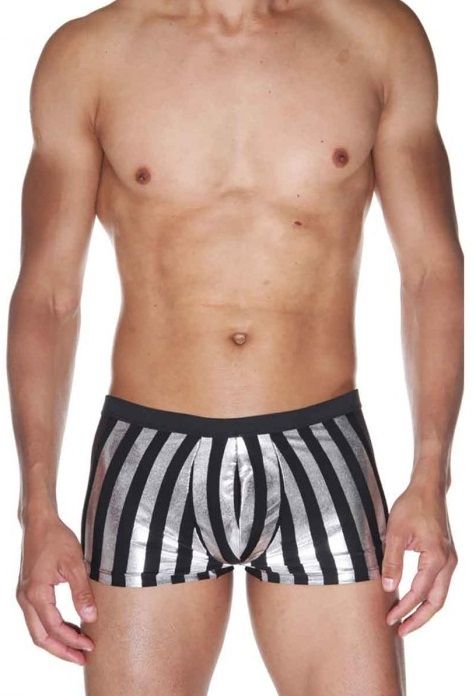 Трусы-боксеры с низкой посадкой для мужчин. Материал трусов гладкий, в крупную полоску.