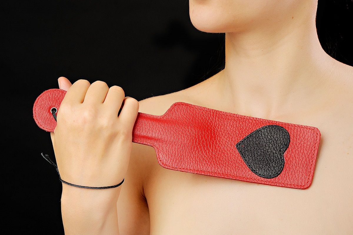Девайс в виде кожаной пластины с жёсткой рукоятью. Изготовлен из натуральной кожи красного цвета с черным узором в виде сердца. При сильном воздействии наносит очень чувствительные шлепки.