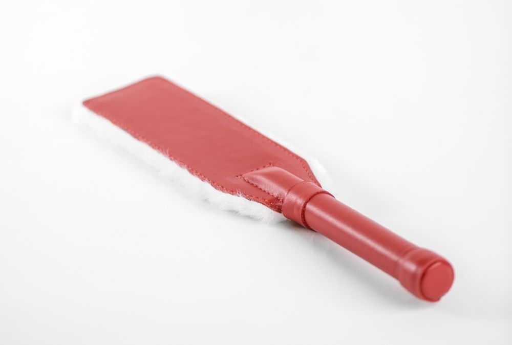 Двусторонняя шлепалка красивый и функциональный девайс. С одной стороны шлепалка выполнена из натуральной кожи красного цвета с другой стороны нежнейший мех. Ручка из натуральной кожи максимально комфортна в руке. Шлепалка при ударе звучит громко и эффектно. Ширина - 6,5 см.