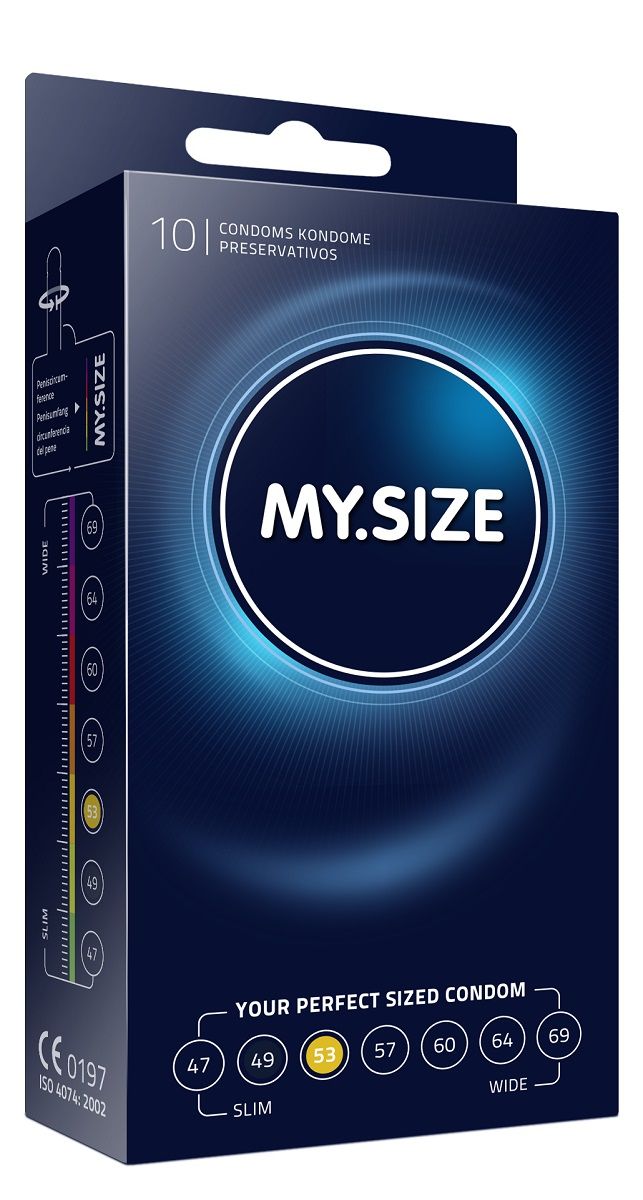 Презервативы MY.SIZE №10 размер 53 с силиконовой смазкой и резервуаром. Форма цилиндрическая. Качество ISO 4074: 2002, CE0197. Толщина - 0,07 мм. В упаковке 10 шт.