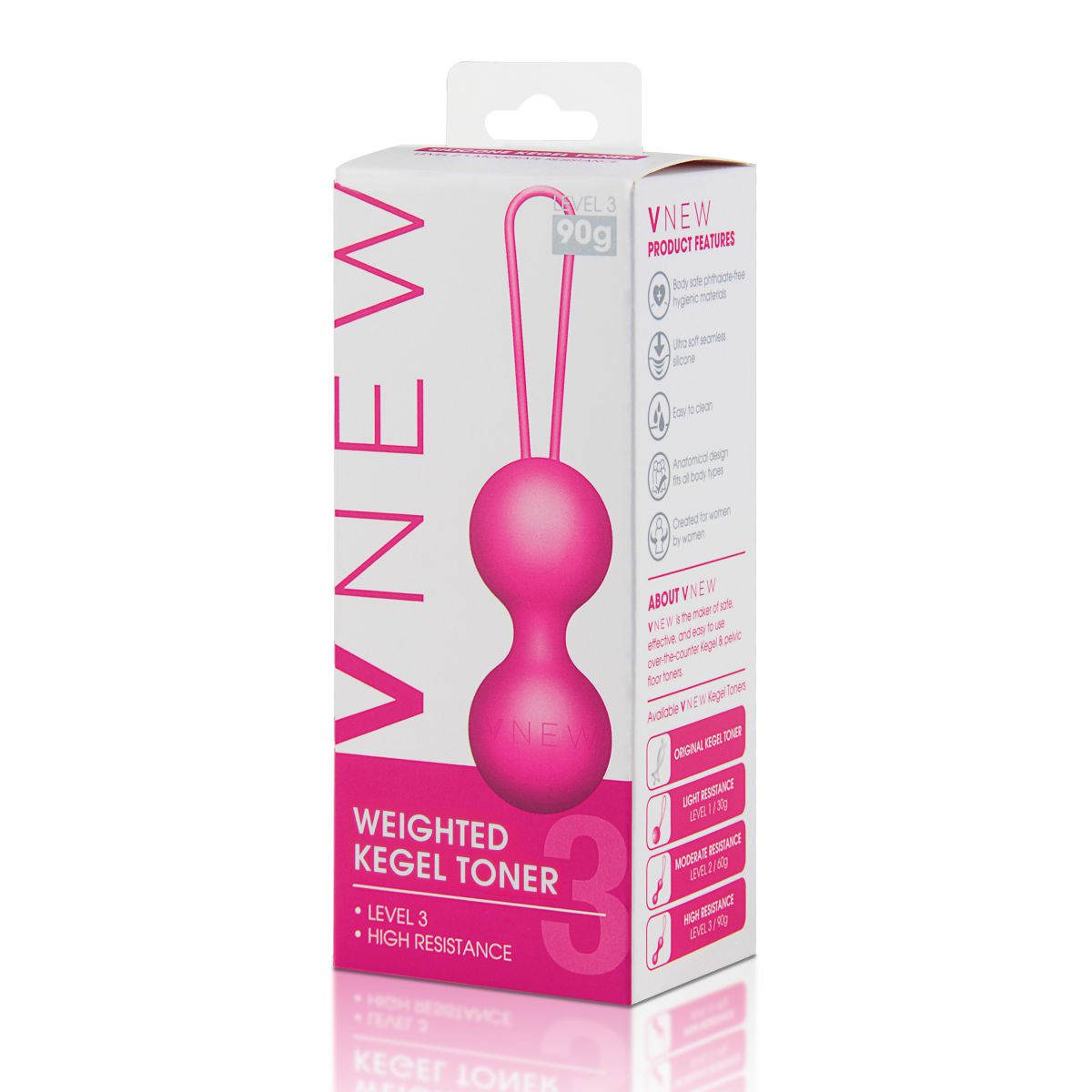 Вагинальный тренажер VNEW level 3 со высоким уровнем сопротивления идеально подходит для тренировки мышц тазового дна уже для тренированных мышц. Шарики выполнены из безопасного приятного на ощупь бархатистого силикона, внутри шариков дополнительный утяжелитель, который создает смещенный центр тяжести. Тренировка влагалищных мышц позволяет не только испытывать более яркие ощущения при половом контакте, но и подготовиться к рождению малыша, сократить период послеродового восстановления, продлить и укрепить женское здоровье. На тренажере удобный силиконовый шнур для извлечения. В комплекте удобная сумочка для хранения шариков. Вес - 90 гр.